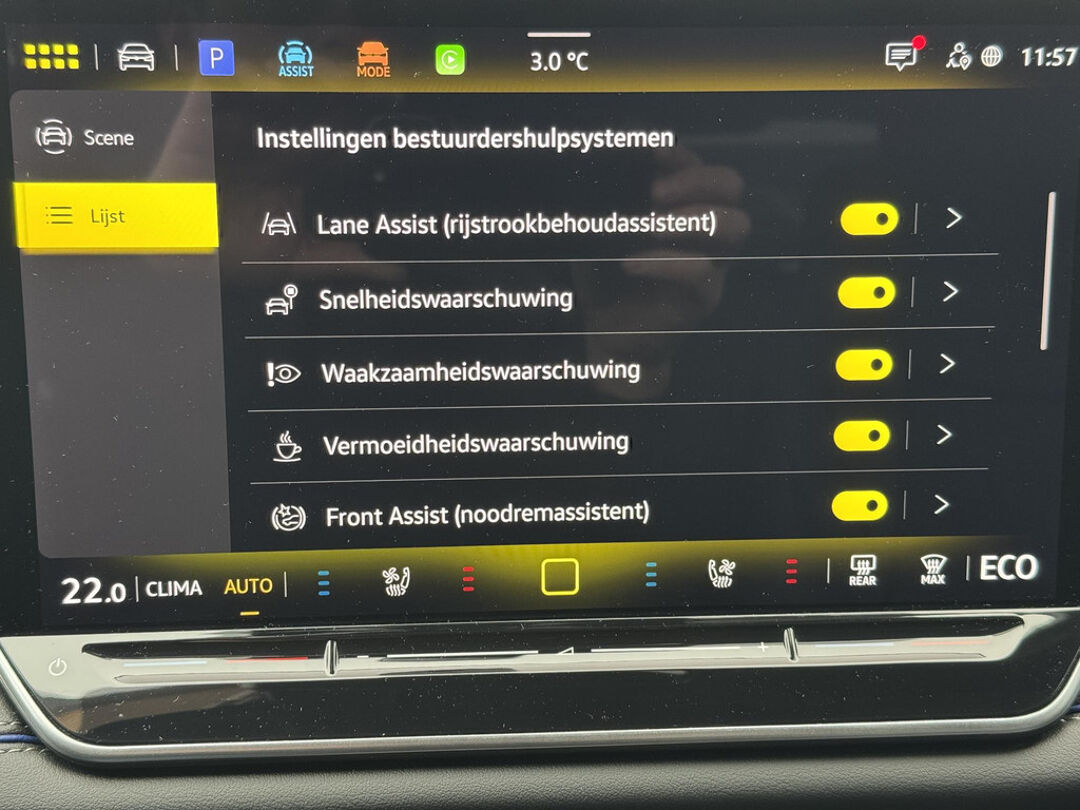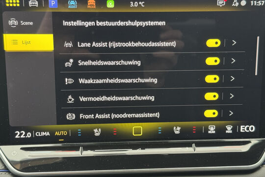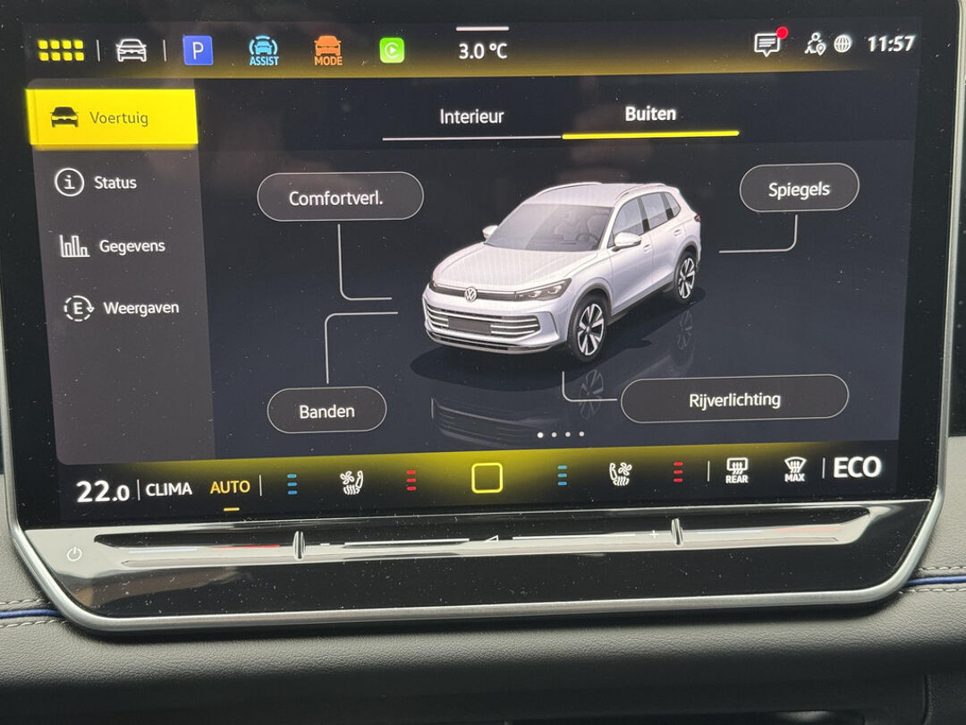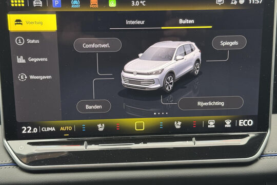 Deze Volkswagen biedt u niet alleen comfort en rijplezier, maar ook veiligheid. Actieve veiligheidssystemen houden voor u de weg in de gaten en reageren op onvoorziene situaties voordat u dat kunt. In het instrumentarium ziet u tijdens de rit ook de belangrijkste verkeersborden aangegeven, die de auto automatisch voor u leest. Deze Volkswagen Tiguan is ook behulpzaam als het gaat om een rechte koers. Het Lane-keeping systeem signaleert en corrigeert als u onbedoeld de rijstrooklijnen dreigt te overschrijden. De forward collision warning geeft een botswaarschuwing als een aanrijding dreigt met een voorligger. De veiligheid van deze auto wordt verder verhoogd door dodehoekdetectie, hill hold functie, vermoeidheidsherkenning, frontale botsbescherming en bandenspanningcontrolesysteem.